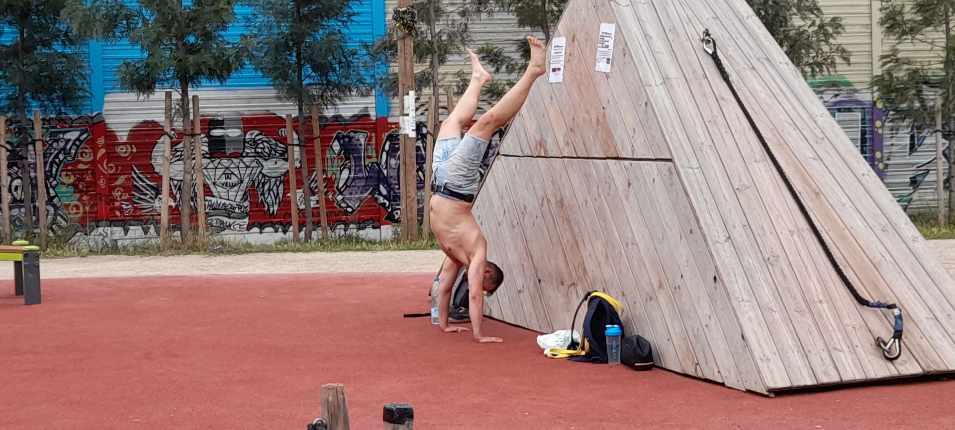Calistenia -vía Barcino 72 césped Superior, Barcelona.